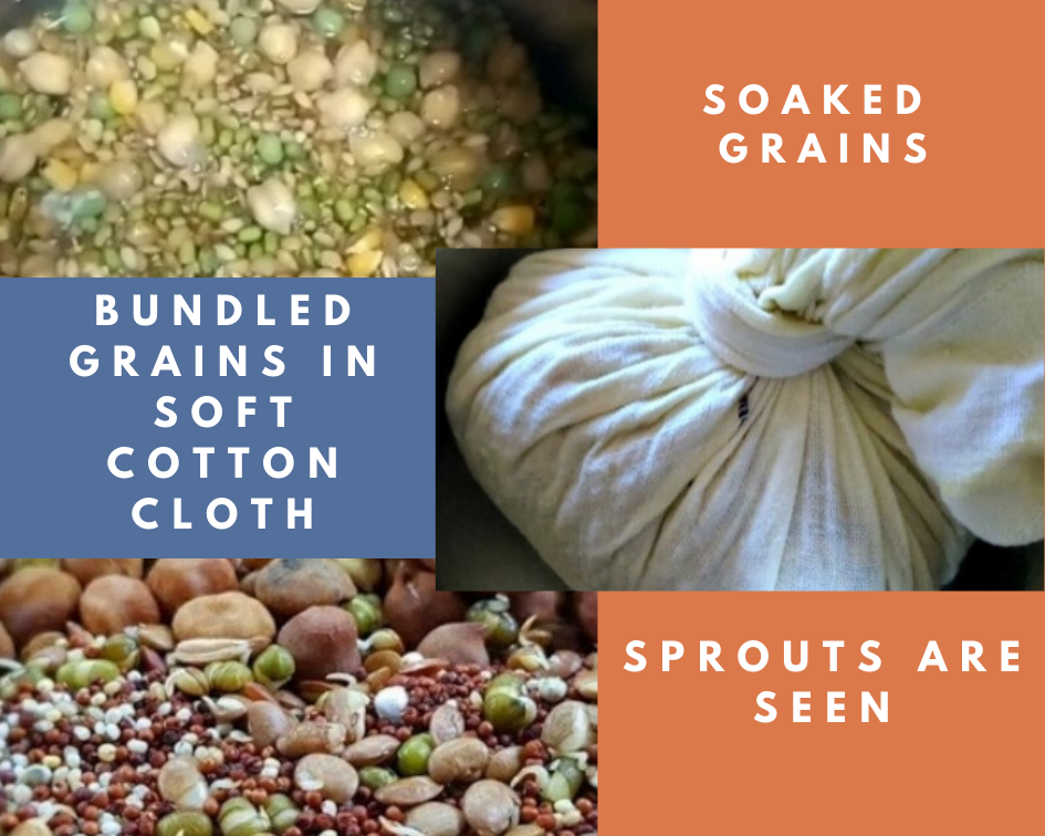 Step 4: The grains are tied in a soft cotton cloth like a bundle.