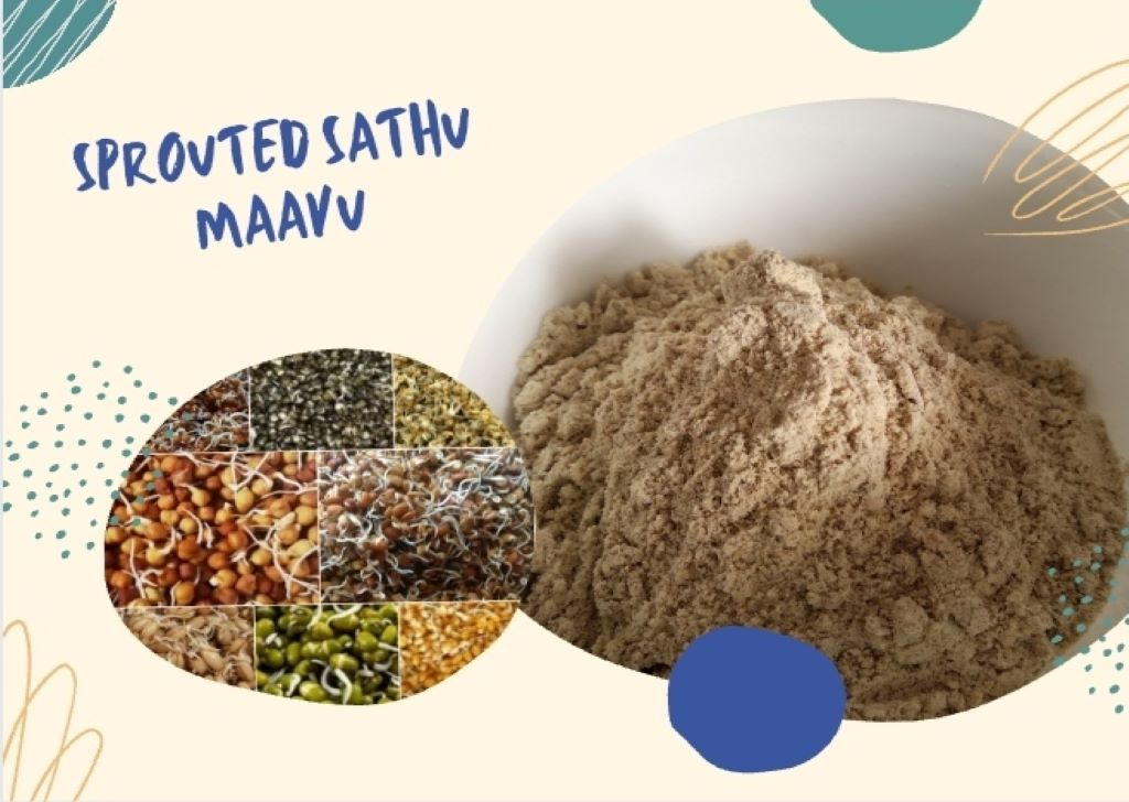 The sprouted home-made sathu maavu or health mix powder can be stored in an airtight container. It can be placed inside a refrigerator for 6 months or outside in a cool dry place for 2 to 3 months.